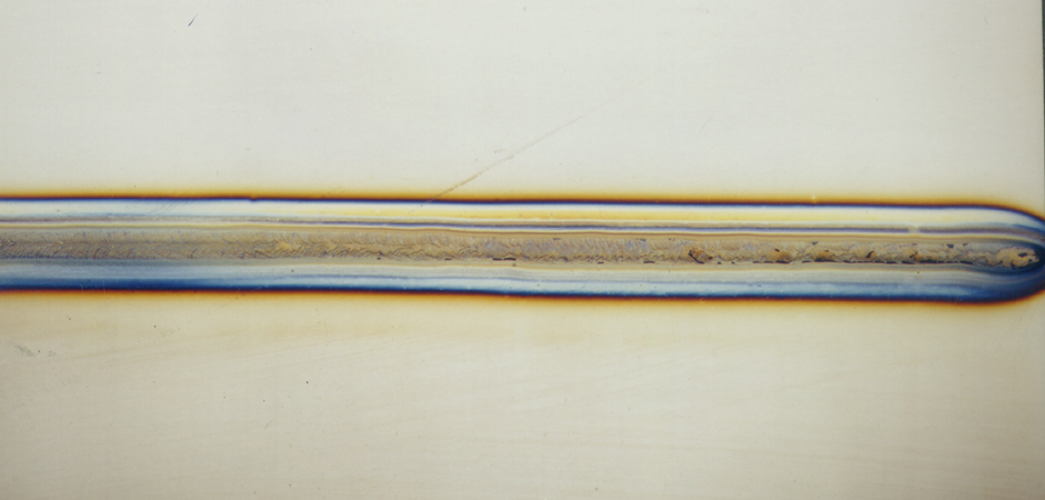 The welding parameters should be set by the welding engineer and enforced by quality control. Also, purging should continue until the weld seam has cooled sufficiently so that oxidation can no longer occur. When making multiple root-pass welds, purge gas flow should be maintained until the weld seam is 3/8 to 1/2 inch thick, depending on the specific welding procedure and the material's elasticity. Preheating pipe with high temperatures, as is sometimes recommended, can encourage the formation of chrome oxides, and a rest oxygen content below 100 PPM is highly recommended.